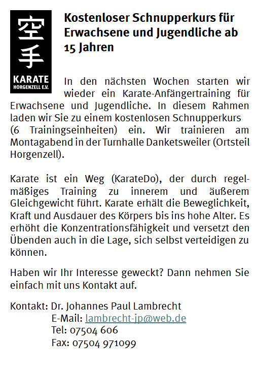 (Schwerpunkt Traditionelles Karate, Selbstverteidigung)